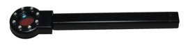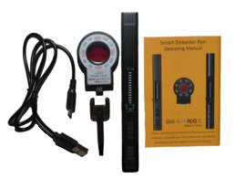 Кроме того, детектор может найти как беспроводные камеры, за счет тех же датчиков, так и проводные модели. Для этого, в комплекте поставки имеется съемный окуляр, который не мешает при незаметном использовании антижучка и может быть надет только в то время, когда Вам нужно проверить помещение на наличие камер.